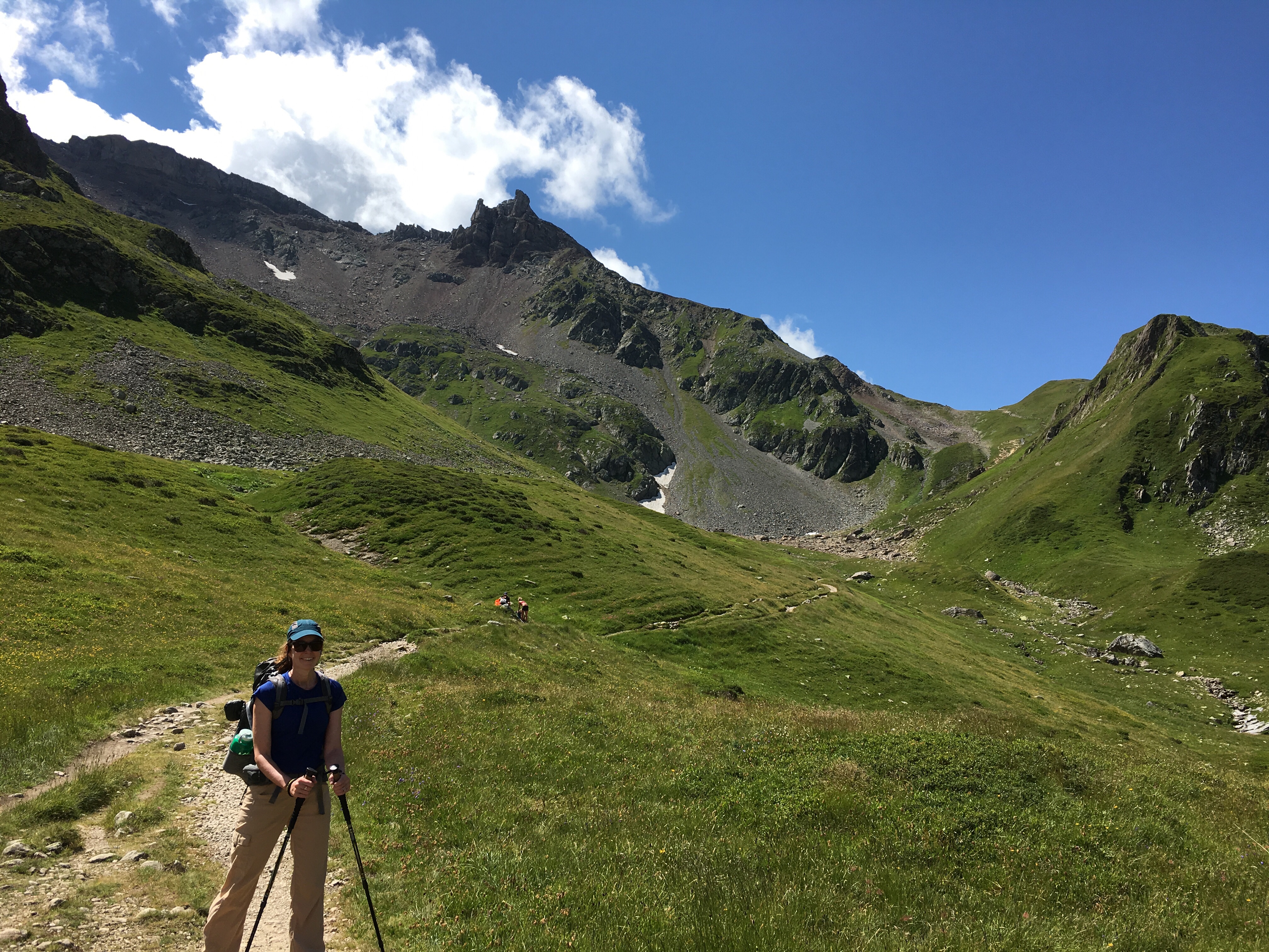 At the top of the pass, we could see for miles in every direction. Green valleys stretched out for miles far below. Small, puffy clouds appeared in the air above the valleys and beneath our feet. It felt as if we were on the rooftop of the world. Then we began our descent into the next valley, on our way to climb the next mountain.