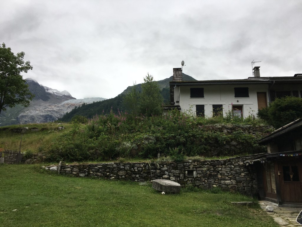 After passing back into France, we only had two nights left. We descended 3,000 feet into the top part of the Chamonix Valley to Tre-le-Champ and the Auberge de la Boerne, a small inn that looked as if it had been around for several hundred years. The auberge sported wooden beams, low ceilings and narrow passageways. We arrived minutes after a rather amusing moment where, after hours on the trail and in a moment of ambiguity as to our exact location, I had sighed, “I just want a sign of where we are.” Literally we looked to the left, and there was a small wooden placard nailed to a tree that read “Auberge de la Boerne” with an arrow pointing to the left. We laughed and headed to our evening haven.