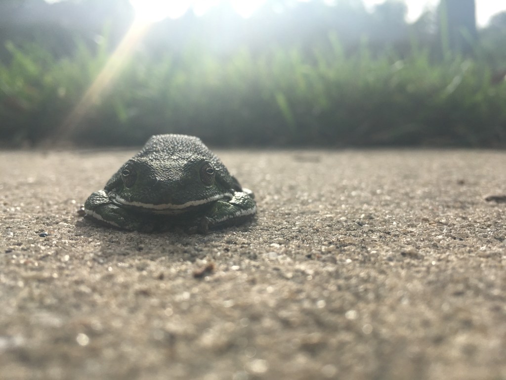 If he sees a frog on his path, does he ever wonder what the world looks like from its perspective?