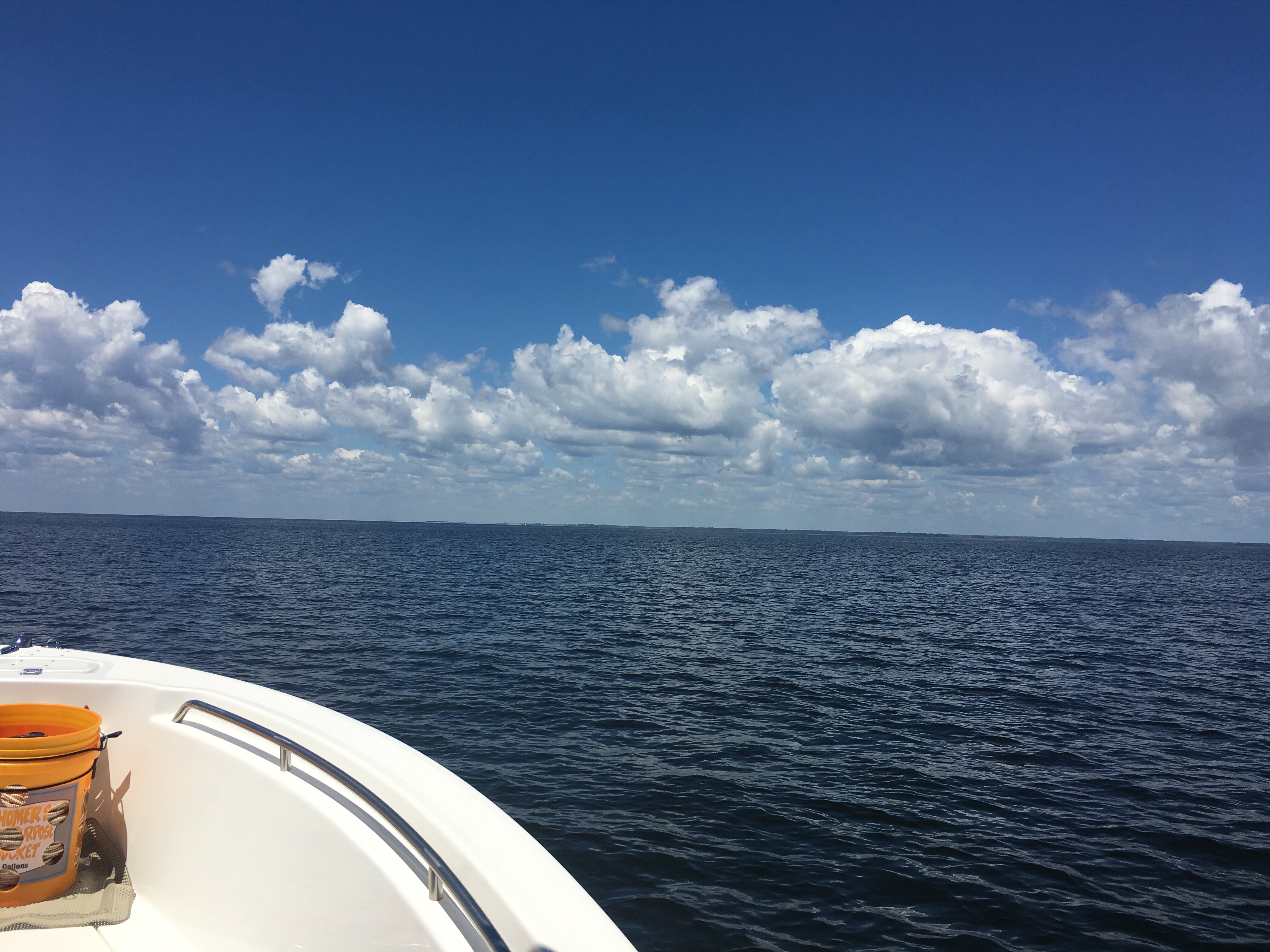 Last week Curt and I took our boat to Cedar Key for the last time. We saw dolphins breaching in shore as we made our way out of the channel. The skies and water shone in the deepest blue. At Seahorse Reef, you could see all the way down to the ripples in the sand and distinguish between the lighter sand and the dark patches of grass. A light wind skittered across the top of the smooth water, causing tiny ripples. A few puffy clouds gathered in the distance.