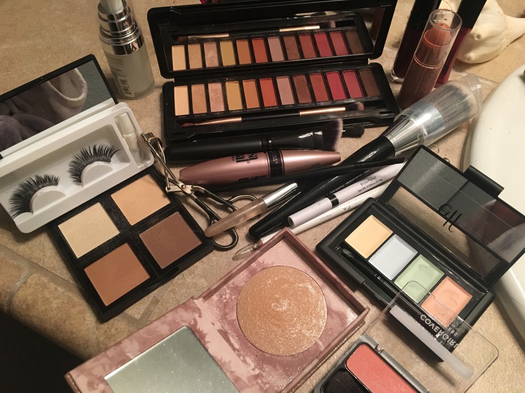 I go to Target and an employee, a young woman with green hair and fabulous stage-ready makeup, helps me find the things I need. Blush, brushes, contour, concealer, an eyeshadow palette all find their way into my house. I have four makeup brushes now! I’m still not sure what all of them are for.