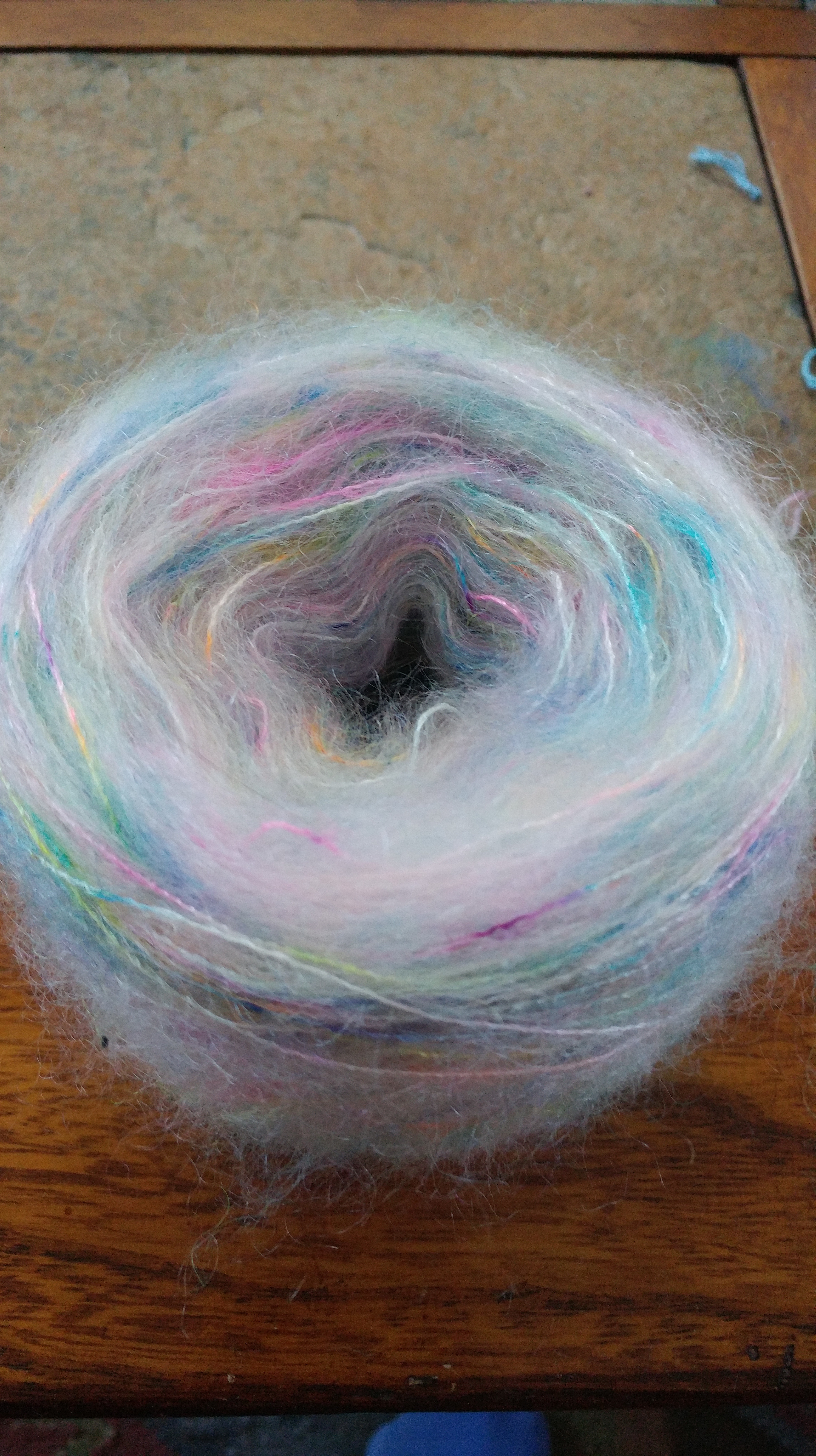I knit, which means I spend a lot of quality time with yarn. A lot of yarns come in skeins, which are strands of yarn looped together in a loose coil. These large loops become easily tangled, so knitters often use a yarn winder, a device with a handle that you can crank and a cone in the middle for a strand of yarn, plus a yarn swift, an apparatus that holds the skein in a wide circle, to wind the skein into a compact ball. But if you have a yarn winder but no yarn swift, there are lots of opportunities for the yarn to become tangled as you attempt to wind it.