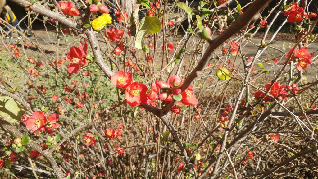 The quince’s delicate red petals smiled at me and seemed to whisper in my ear: “Hang on just a little longer. Spring is right around the corner.” Their bright colors never failed to make me smile, even on the darkest day.