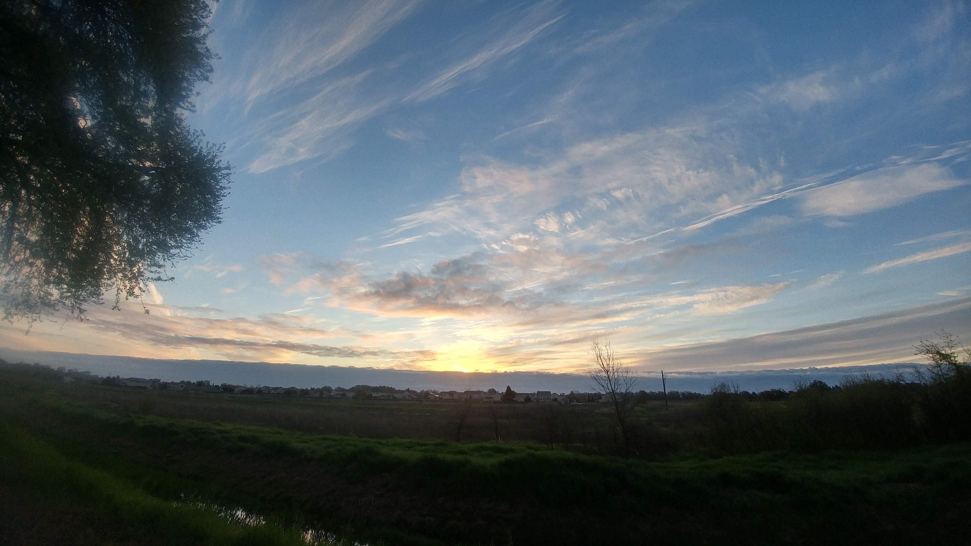 On my morning walk today, suspended between a storm front over the Sierras and a bank of gray clouds from the Pacific, I marveled at the sky.