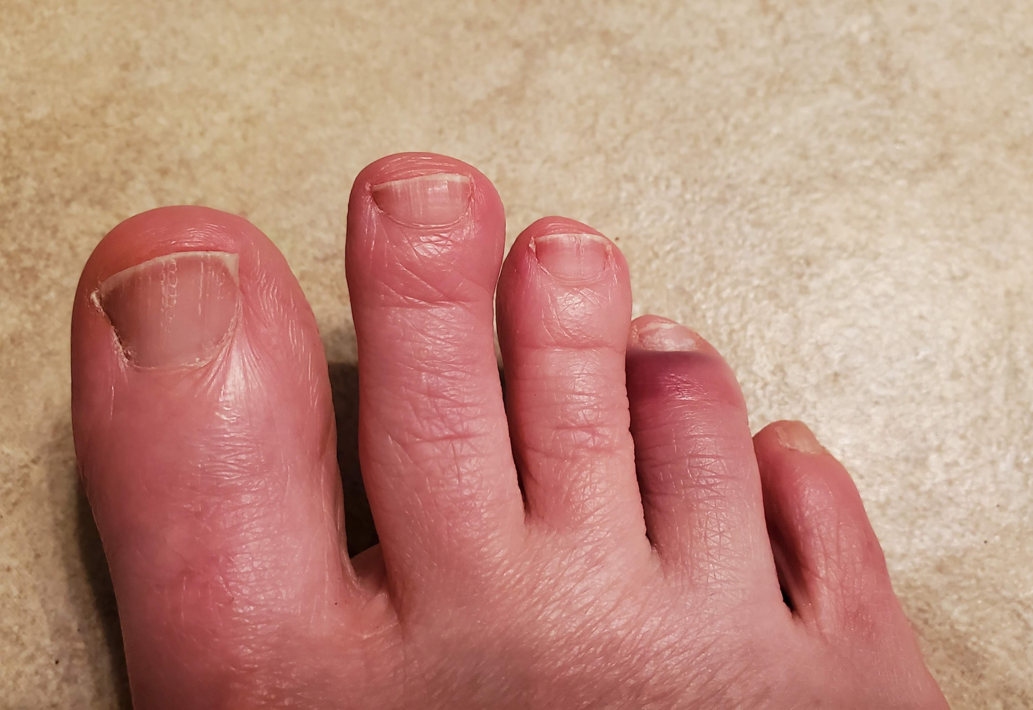 Later, however, my toe began to turn red. Then it turned purple. Then it swelled up. Then the purple and red began to spread down into my foot.