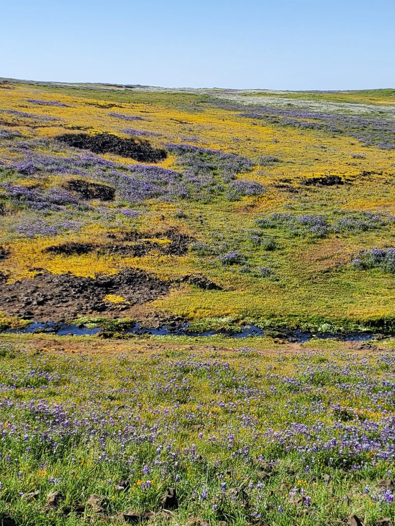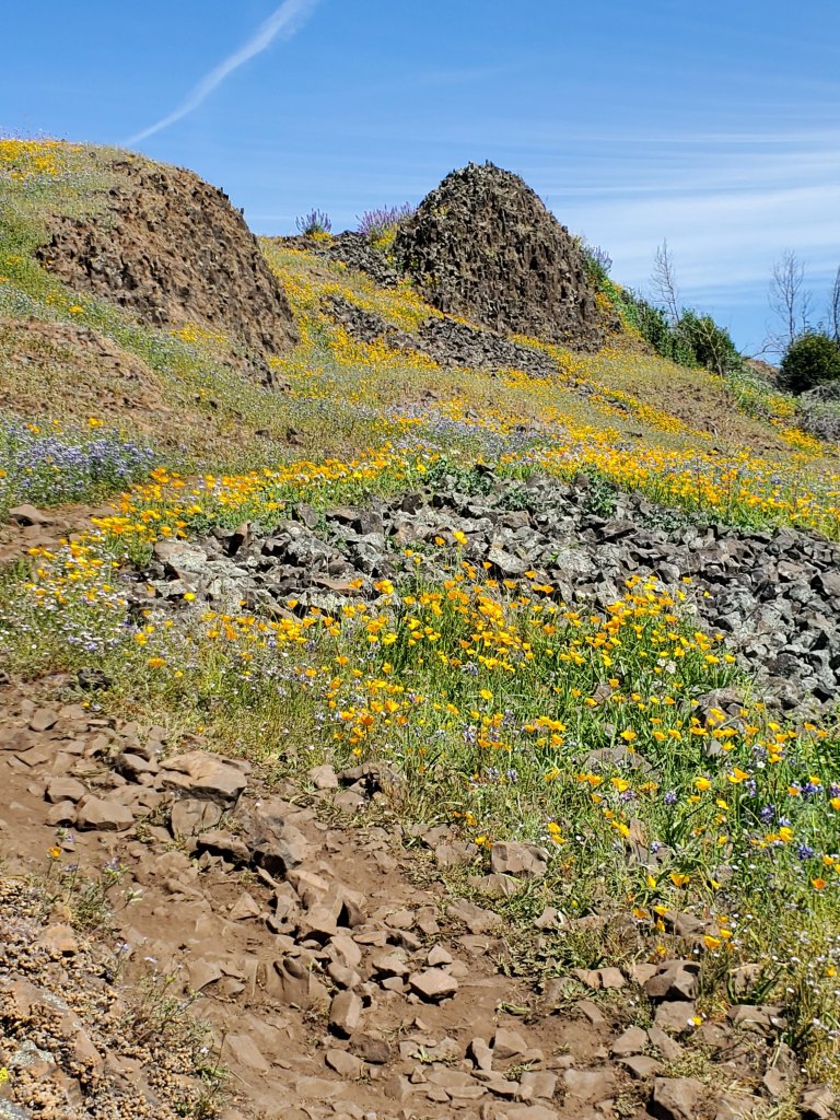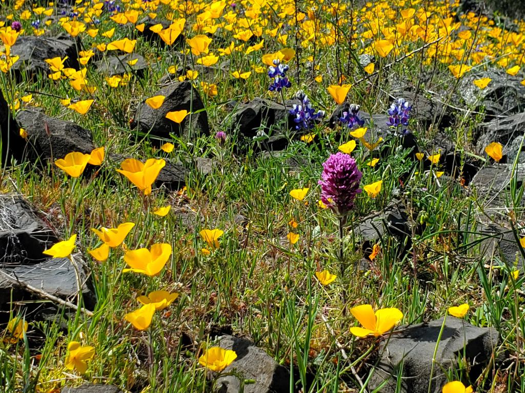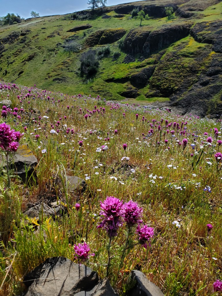 Everywhere I looked, flowers painted the landscape with purples, yellows, whites, pinks and oranges. Poppies spilled down valleys between basalt columns. Buttercups flowed around rock piles. It looked as if Mother Nature had gone wild with her paintbrush on the lush green canvas of spring.