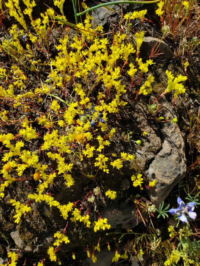 I feasted my eyes on the flowers, ranging from tiny yellow threads on the rocks to large stalks of lupine. Close up, each type had its own color, shape and size. From a distance, they simply looked like fields aflame with color.
