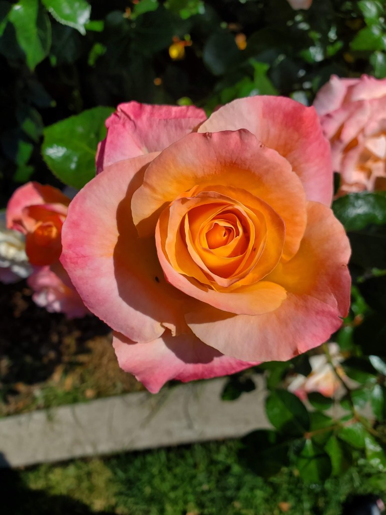 We stood in front of each rose bush and savored it. Each one had a slightly different color, size and shape. Some roses had a single row of petals, while others had complex clusters. Some sported a single color, while others looked reminiscent of a sunset.