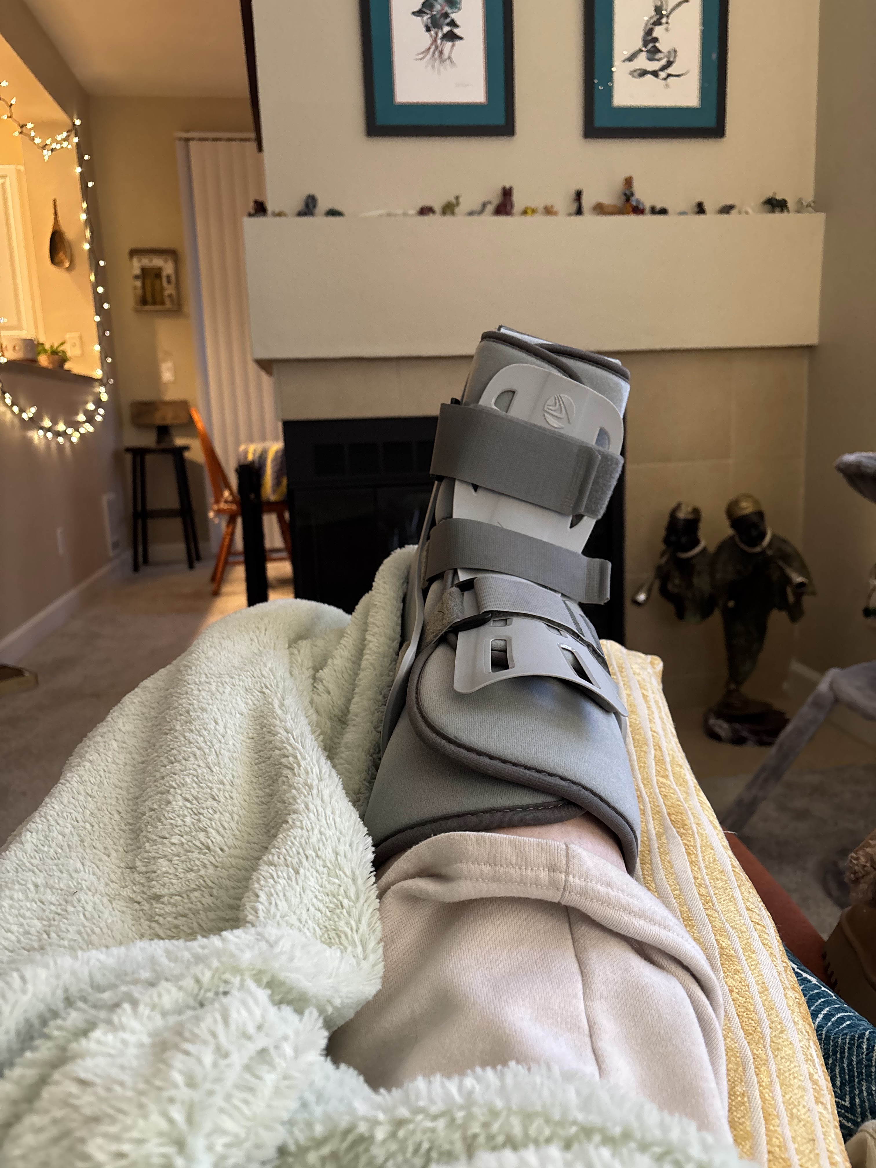 I couldn’t drive for more than a month. The orthopedist said no weight bearing for two weeks. I had crutches and a boot. Snow and ice made it treacherous to go outside.