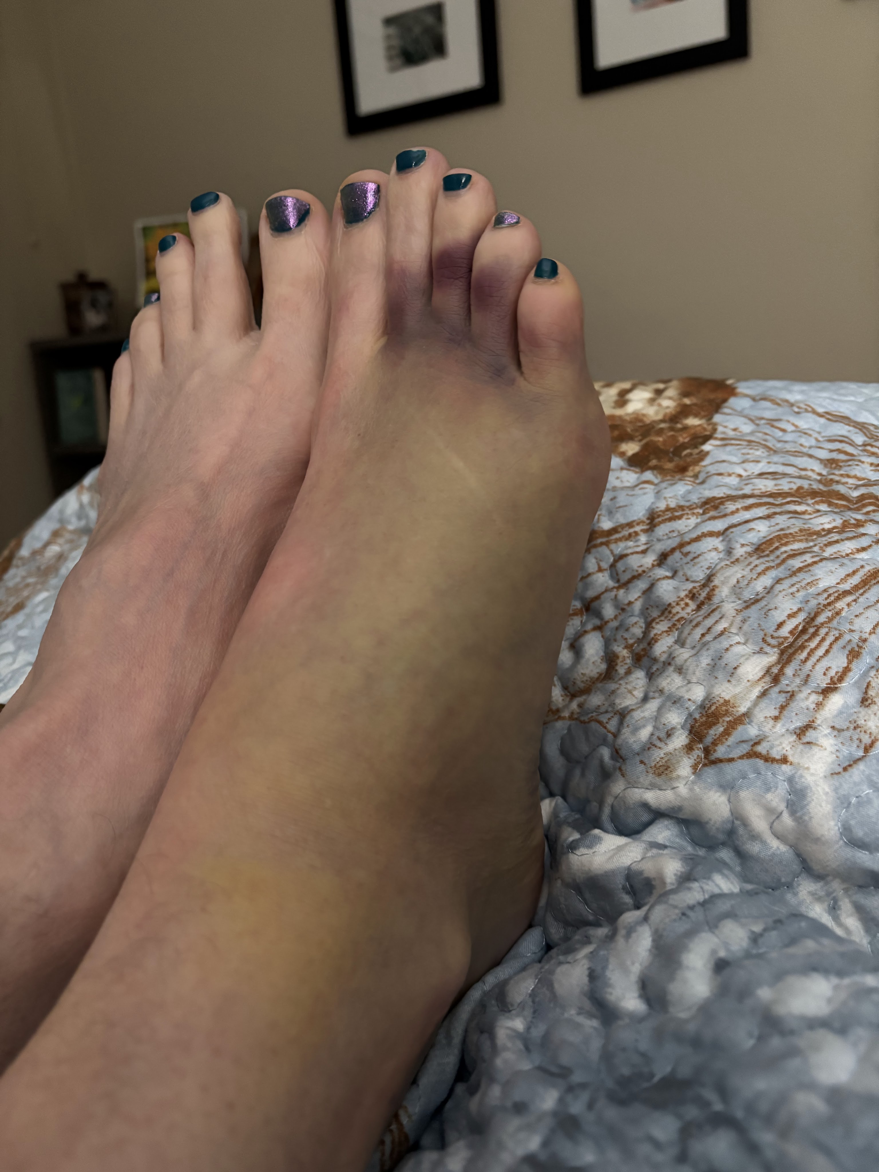 She touched her hand to the blanket, the offending foot beneath the brush of her fingers.